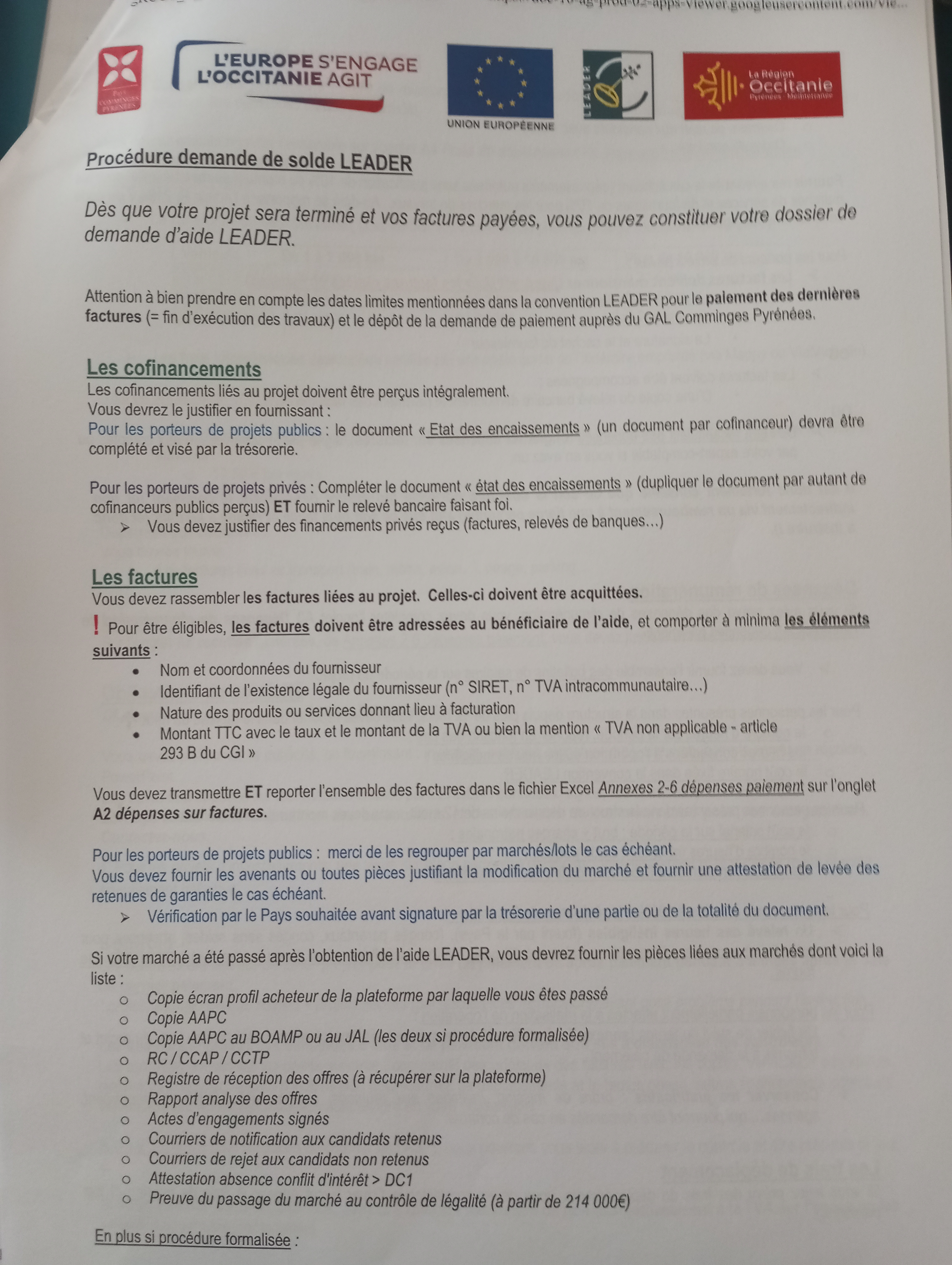 Dans un souci de simplification, faciliter la compréhension du porteur de projet en éditant les 10 règles à absolument respecter pour garantir une bonne gestion de son projet LEADER.