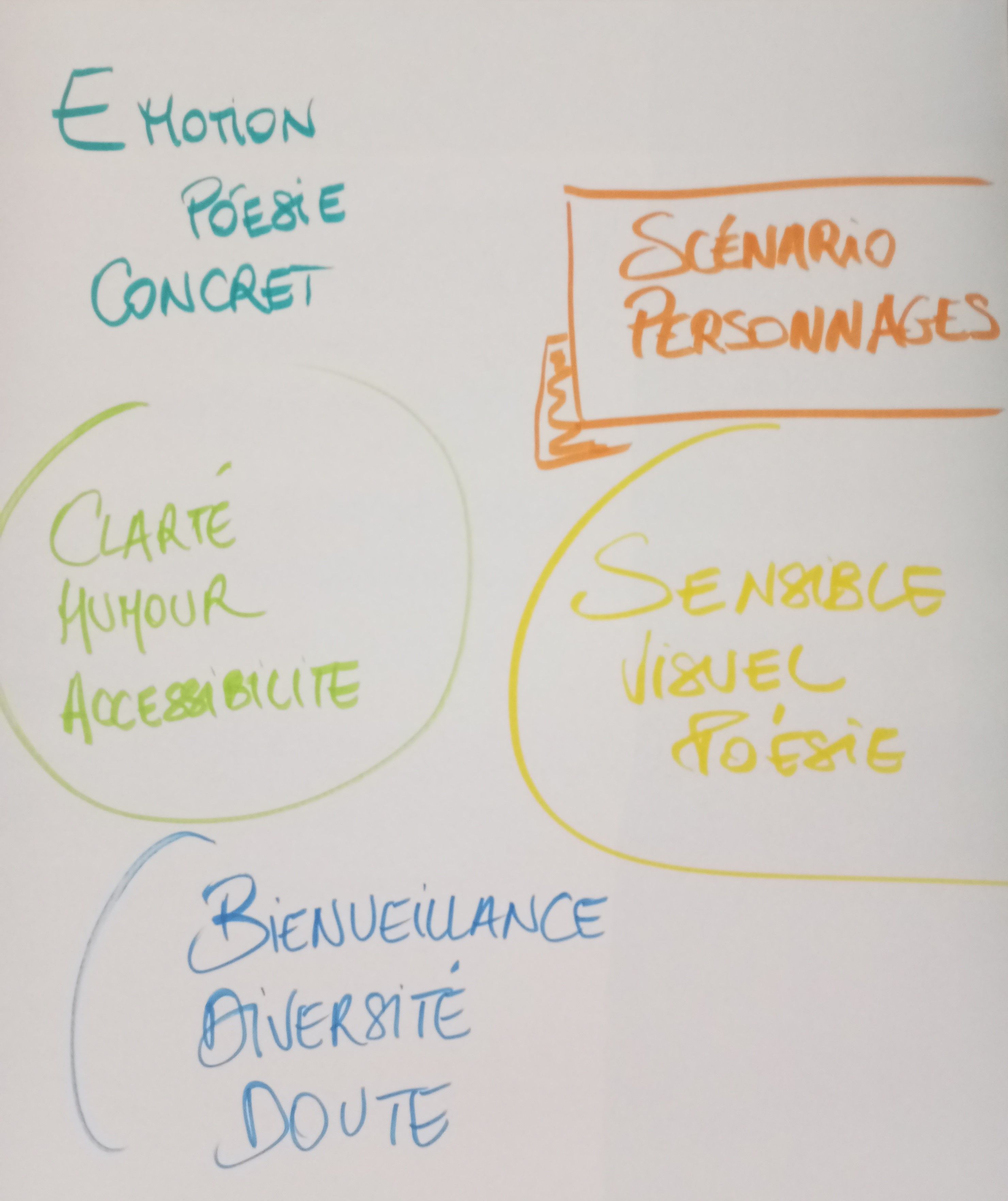 Il faut incarner notre récit. A ce stade, il n'y a pas d'incarnation. On voit la trajectoire, on comprend la temporalité. Mais il faut essayer de trouver une trajectoire plus émotionnelle. Tout ce qui s'est noué d'un point de vue émotionnel durant ces rencontres ça se raconte. Les mots sont importants. Le doute, les projets qui n'ont pas abouti, les connexions qui ne se sont pas traduites en projets.... tout cela peut donner naissance à d'autres rencontres, à d'autres outils. La note t'intention, notre synopsis n'est pas encore suffisamment clair.
