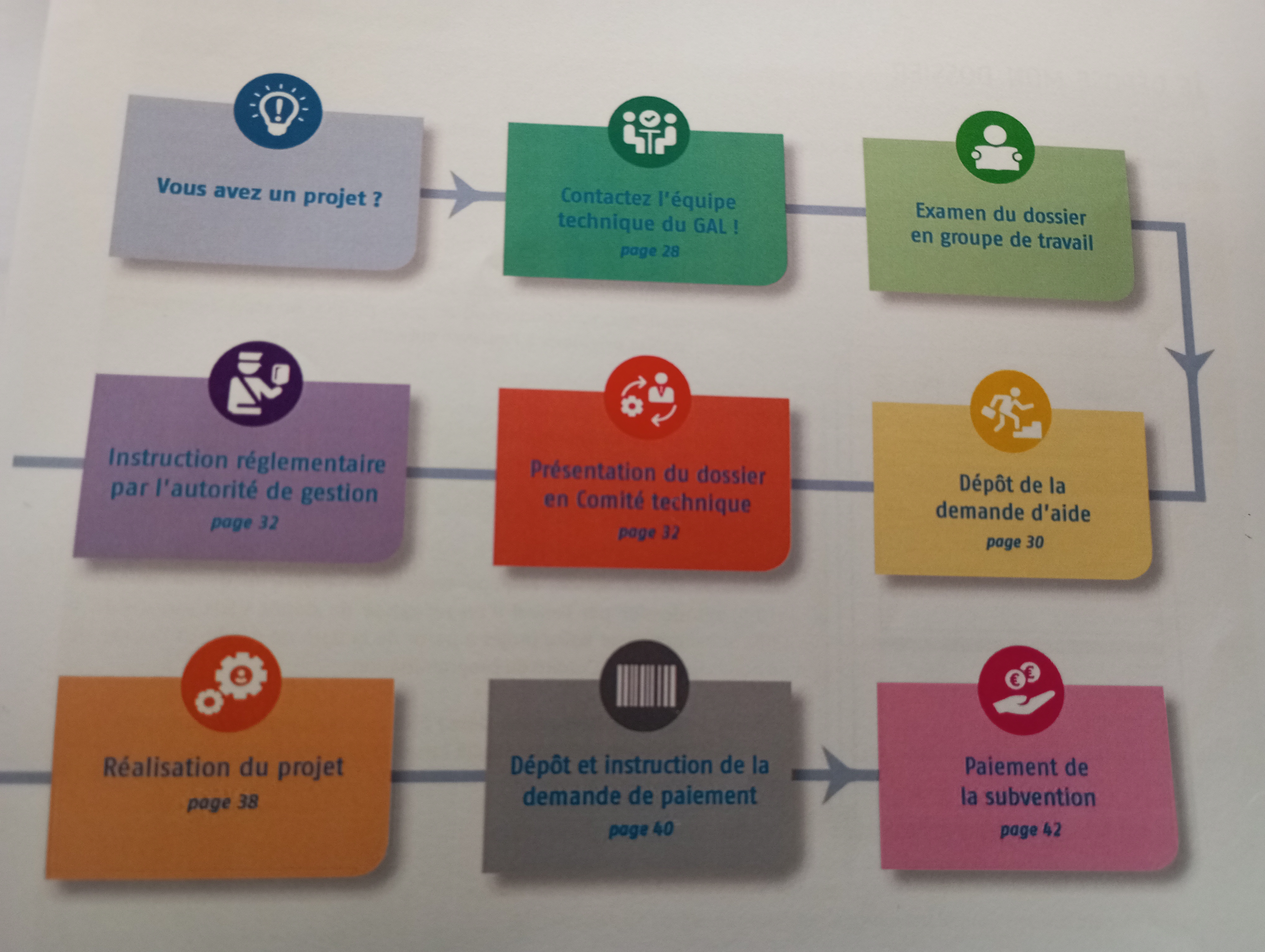 Plusieurs GALs ont essayé de décrire de manière simplifiée le circuit de gestion d'un dossier LEADER. Nous proposons de partir d'un schéma pour décliner le sommaire du guide.