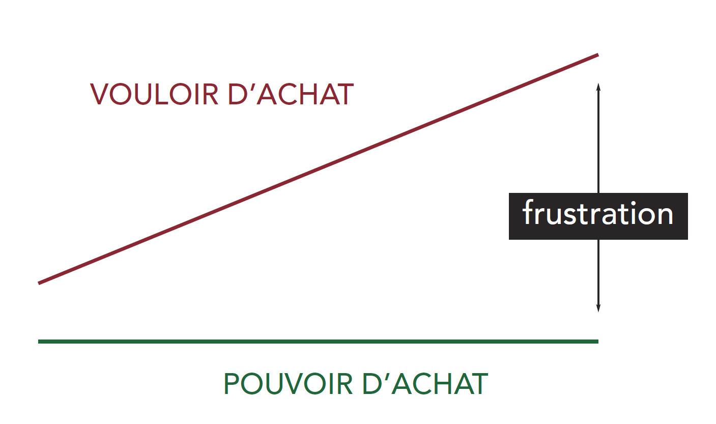 - Il faut arrêter de dire que le pouvoir d’achat est en baisse, ce n’est pas le cas ! C’est notre vouloir d’achat qui augmente face à un pouvoir d’achat constant créer de la FRUSTRATION..